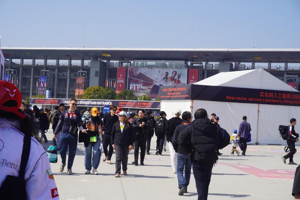 26岁的王先生从湖南长沙赶来,提着行李箱从机场直达赛车场。这位阿斯顿马丁车队的车迷,在2025年12月抢到了本周五和本周日的门票,并在当月就早早订下了赛车场附近的酒店。“今年不知道是不是受电影影响,感觉F1的热度又高了很多。今年比赛规则改动很大,周末也想看看,法拉利有没有希望和梅奔‘掰掰手腕’。”王先生说,他这几天会和从广东、浙江、湖南等地来的车迷朋友们在上海“面基”,上海的朋友也已经订好了餐厅,大家一起尽享属于赛车的周末。