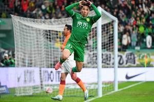足协杯1/4决赛,北京国安客场通过点球大战击败青岛西海岸,晋级半决赛,比赛进行到加时赛第116分钟,恩加德乌后场长传,曹永竞扣球1v2抽射破门,一度帮助国安取得领先。